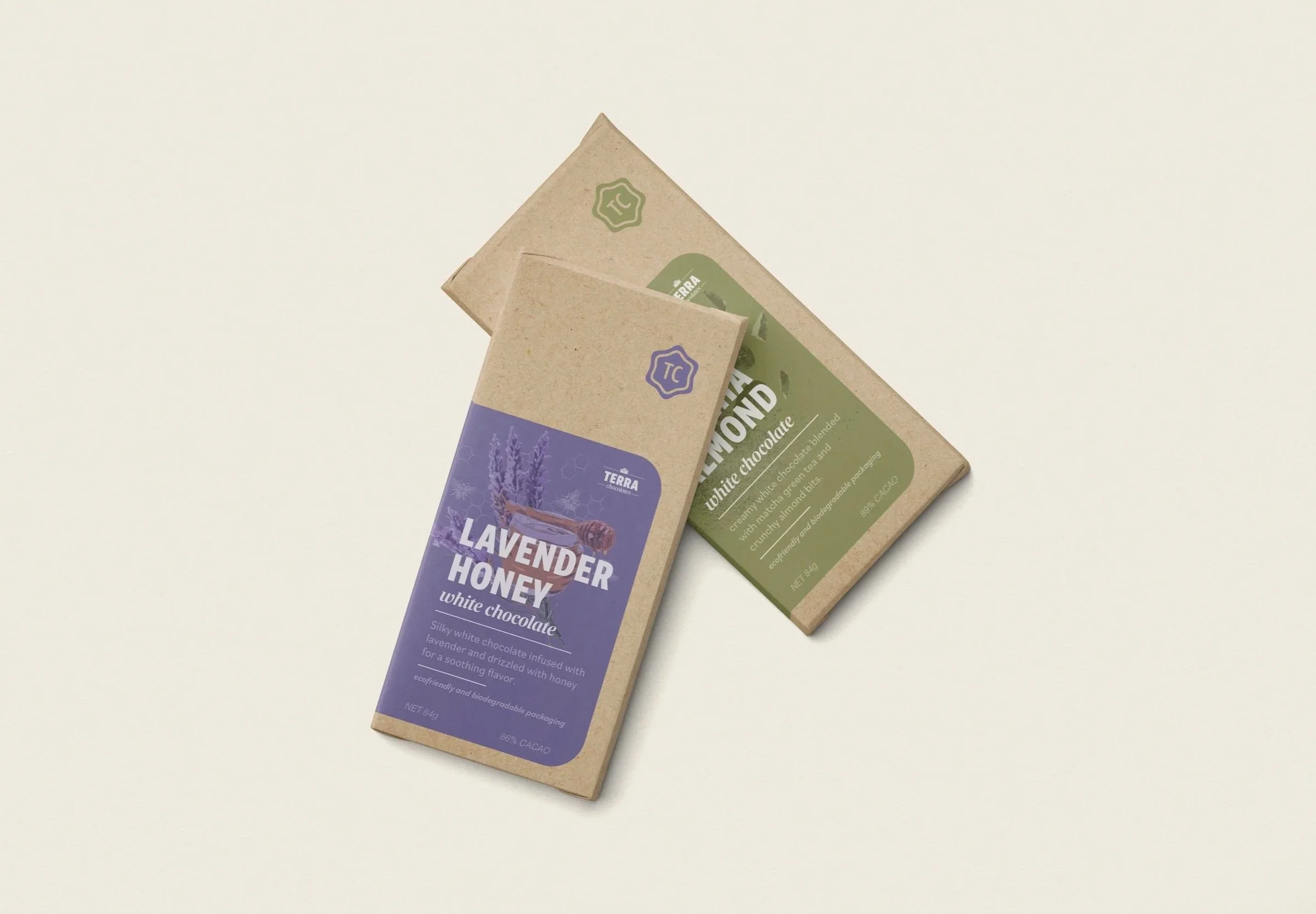Terra Chocolates is a brand that focuses on reaching a variety of audiences using their sustainable, family-friendly, and healthy packaging and ingredients. Their goal is to turn the inward pleasure of eating their chocolate, to an outward representation with their packaging.