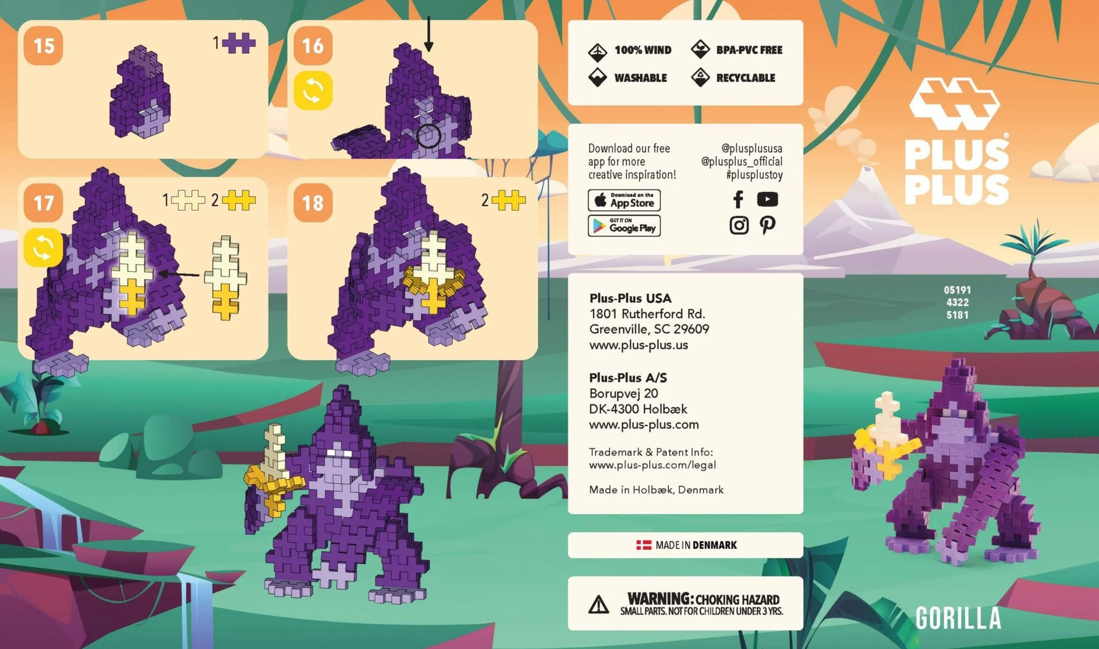 These instruction booklets go inside their respective build tubes. They are visual instructions to help kids and adults piece together the build. Contributions included instruction testing to make sure they were easy to follow, color sampling the illustration for solid blocks, exporting and importing files, image placement, and working within a given template.